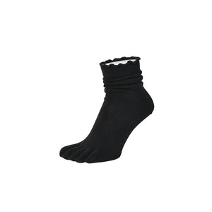 Los calcetines de Tabio se tejen utilizando una tecnología única de tejido tridimensional para adaptarse perfectamente a la forma de tus dedos, permitiéndoles moverse libremente. Evitan la sensación de restricción que se siente con los calcetines tradicionales, lo que proporciona una mayor comodidad y libertad de movimiento que promueve una postura y alineación saludable de los dedos.