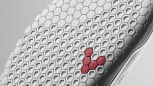 Ligera, de alto rendimiento y 2 mm de grosor, diseñada para mantenerte cerca del suelo. Su dibujo hexagonal favorece la flexibilidad y el agarre multidireccionales, ya que las formas robustas crean pies robustos.